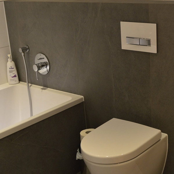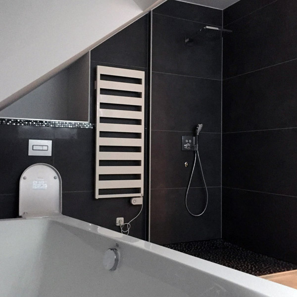- W tej kategorii możliwe są duże płytki XXXL. Można również wybrac sobie ozdoby z mozaiki np. w wnekach lub jako element dekoracyjny pod prysznicem lub w wannie. Wszystkie przejścia na 45 stopni szlifowane oraz klejone klejem dwuskładnikowym epoxydowo-akrylowym w doborze koloru plytki. Mozliwość na życzenie klienta użycie 24 karatowego złota lub srebra w spoiny podczas fugowania.