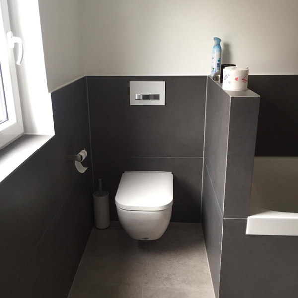 - Układane są proste, małoformatowe płytki (ok. 25 x 30 cm do max.roz. 30x60). Bez użycia płytek dekoracyjnych lub płytek podłogowych na ścianie. Krawędzie płytek pokryte są plastikowymi listwami